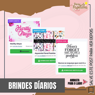 Nele você pode baixar uma fonte gratuita, um artesanato gratuito e um gráfico gratuito todos os dias. Todos os brindes vêm com uma licença comercial e estão disponíveis por apenas 24 horas (lançamento à meia-noite, horário CST).